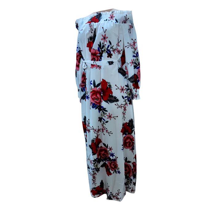 Other Floral Maxi Slash Neck Long Sleeve Dress - White